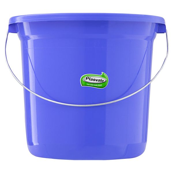 Balde plástico reciclado, com capacidade para 8 litros, disponível na cor azul.