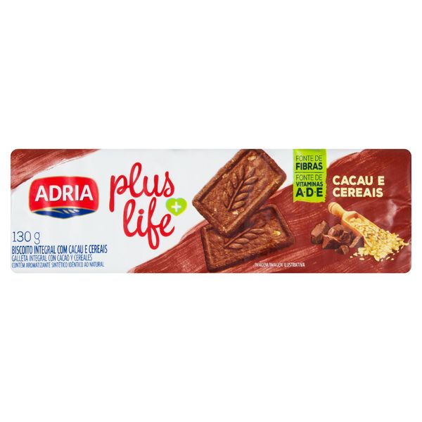 Biscoito Integral Cacau e Cereais Adria Plus Life Pacote 130g