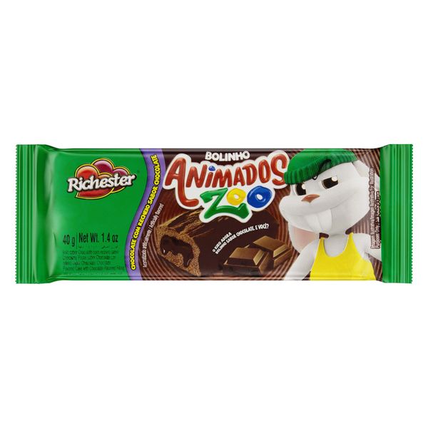 Bolinho Chocolate Recheio Chocolate Richester Animados Zoo Pacote 40g