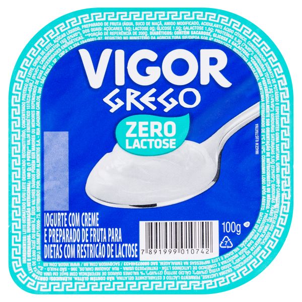 Iogurte Grego Zero Lactose Vigor Pote 100g