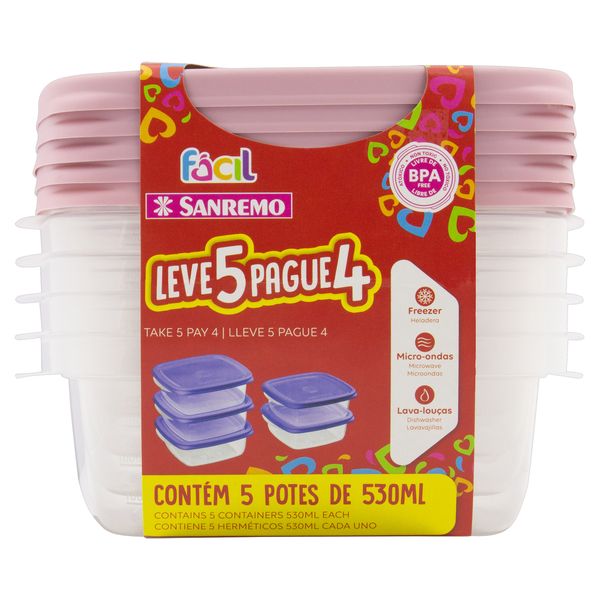 Pote com Tampa Plástico 530ml Sanremo Fácil Leve 5 Pague 4 Unidades
